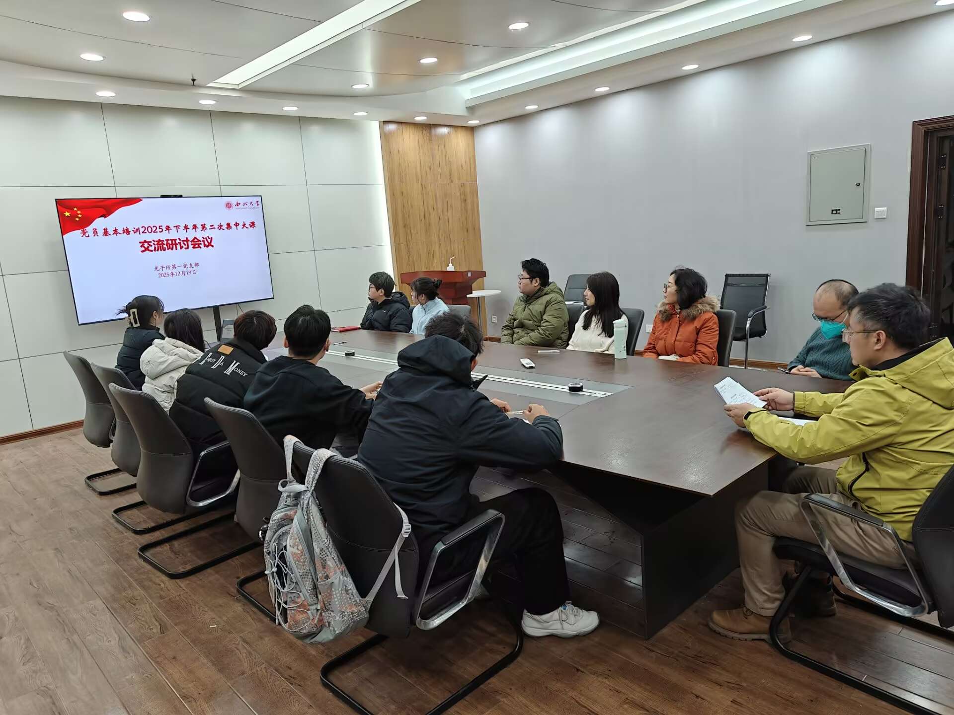 为深入学习贯彻习近平总书记关于新时代党的建设重要思想,进一步巩固西北大学党员2025年下半年第二次集中大课学习成效,强化党员在新时代新征程中的使命担当。近日,我院党委各支部组织开展“学深悟透党建思想,聚力物理创新发展”交流研讨会。会议由各党支部书记主持,全体党员参加了本次交流研讨。