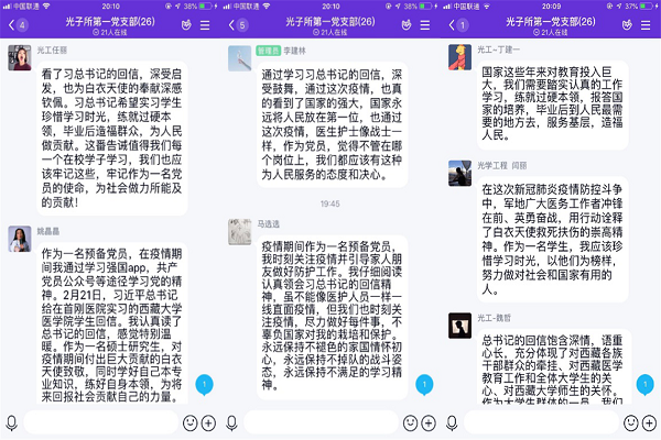 日前,各党支部精心组织师生党员通过线下自学撰写学习笔记、线上讨论交流学习心得以及举行“读回信 话担当”线上主题党日活动等方式,深入学习领会了习近平总书记重要回信精神并展开热议。教职工党员们表示,要向在抗击疫情一线的医务工作者学习,立足本职岗位敬业精业,不断提升业务水平,将思想政治教育有机融入专业课教学中,用心用情引导指导学生成长成才,全力培育培养爱党爱国、心系人民、本领过硬的社会主义合格建设者和可靠接班人。学生党员们通过学习回信精神深受鼓舞,更加坚定了以广大抗疫医务工作者为榜样,珍惜学习时光、练就过硬本领、报效国家服务人民的信念,其中,有毕业生党员表示将不负习近平总书记嘱托,用所学专业知识服务基层,为家乡发展贡献力量,实现自己的人生价值。
