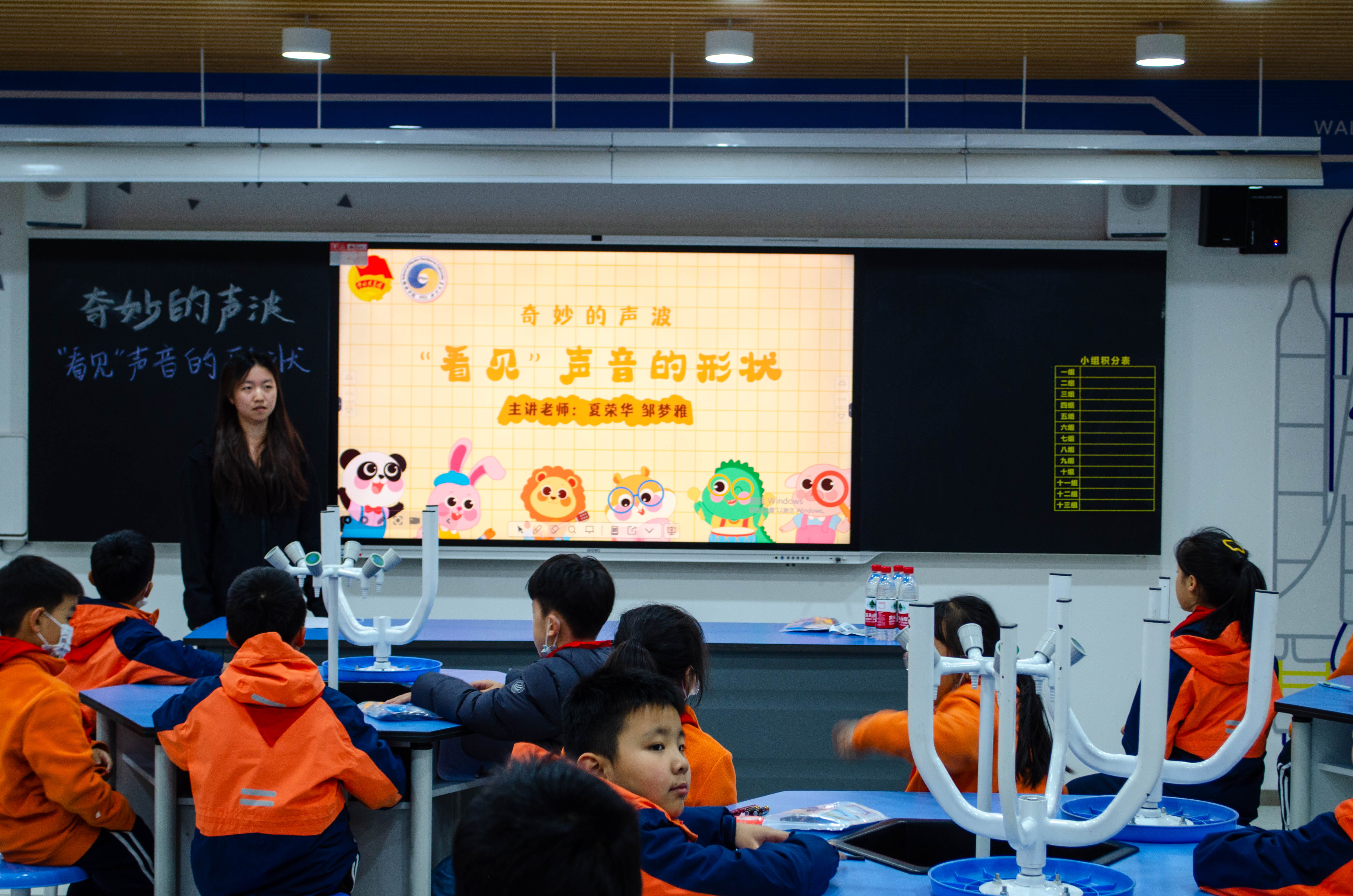 课堂让无形的声波得以“显形”。团队通过金属板振动产生的克拉尼图形,将声波在空间中的驻波分布转化为可见的几何图案;绳波装置则动态演示了波峰与波谷的形成过程。课程融入音乐元素,引导学生观察波形与音高的关联,并启发他们联想声学在乐器制造、通信技术等领域的广泛应用,拓展科学认知的边界。