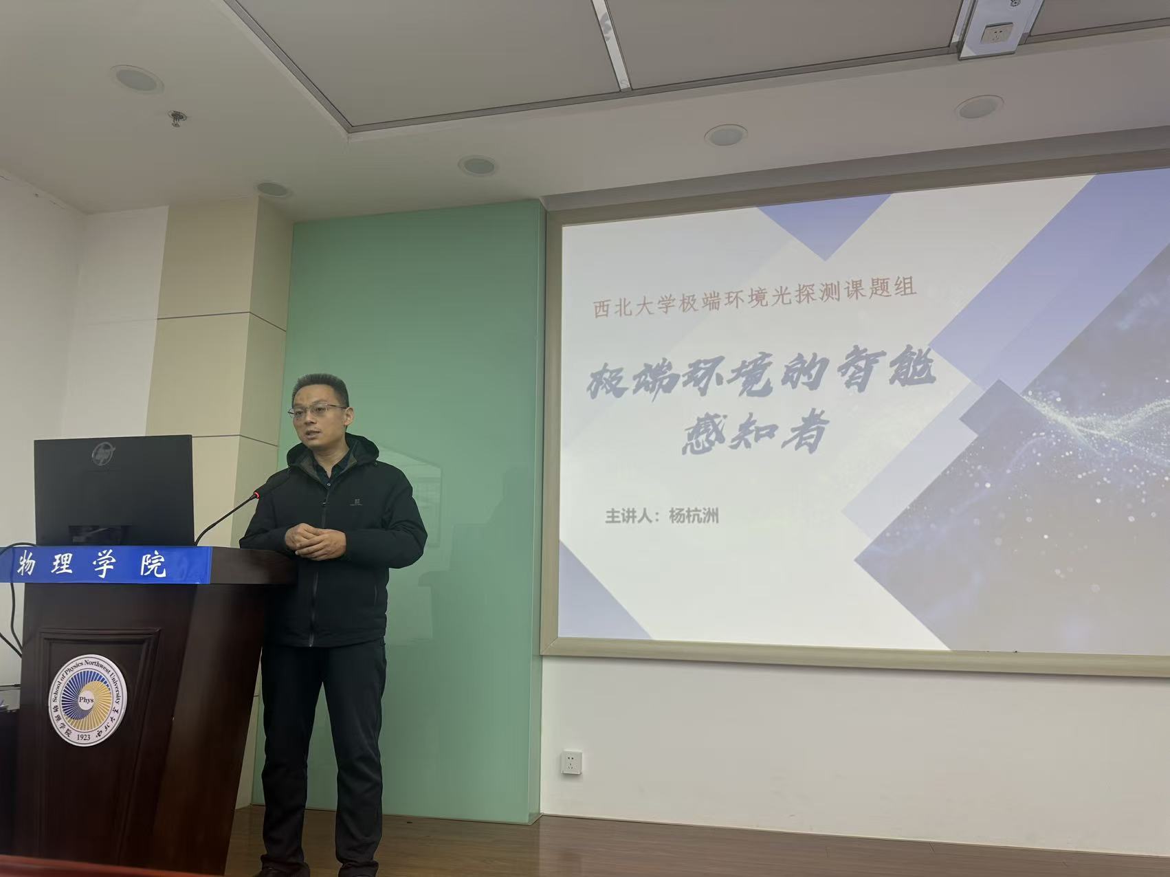 仪式结束后,学院副院长杨杭洲教授以《极端环境的智能感知者》为题,为学员们讲授了开班第一课。杨老师从物理学科与国家战略需求的结合点切入,阐述了当代物理学子应具备的家国情怀与使命担当。他鼓励大家将个人学术追求与国家发展需要紧密相连,主动面向科技前沿与国家亟需领域奋发作为。随后,杨老师结合自身科研实践,生动展示了智能感知技术在极端环境中的突破与应用,让学员们深切感受到物理研究的魅力与价值,进一步明确了新时代青年物理人的奋进方向。
