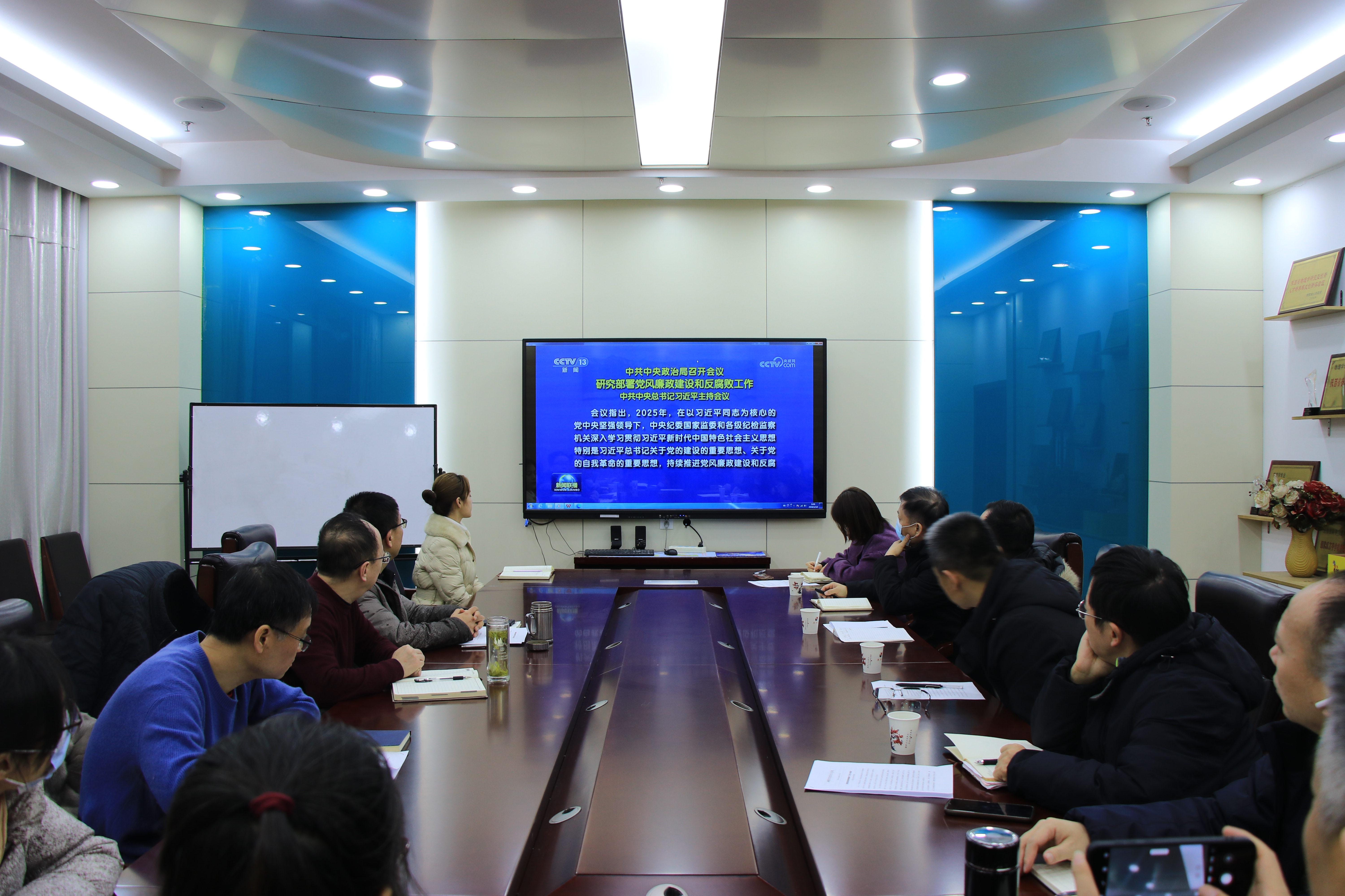 会上,中心组成员集体观看了12月25日新闻联播相关报道,深入学习中共中央政治局研究部署党风廉政建设和反腐败工作会议精神。在集体学习环节,中心组成员集中学习了习近平总书记在中央政治局民主生活会上的重要讲话精神和中央纪委国家监委公开通报七起违反中央八项规定精神典型案例。副院长徐新龙、索兵兵结合工作实际解读《求是》杂志发表的习近平总书记重要文章《推进党的自我革命要做到“五个进一步到位”》,强调要以自我革命精神破解发展难题,不断增强党组织的凝聚力和战斗力。
