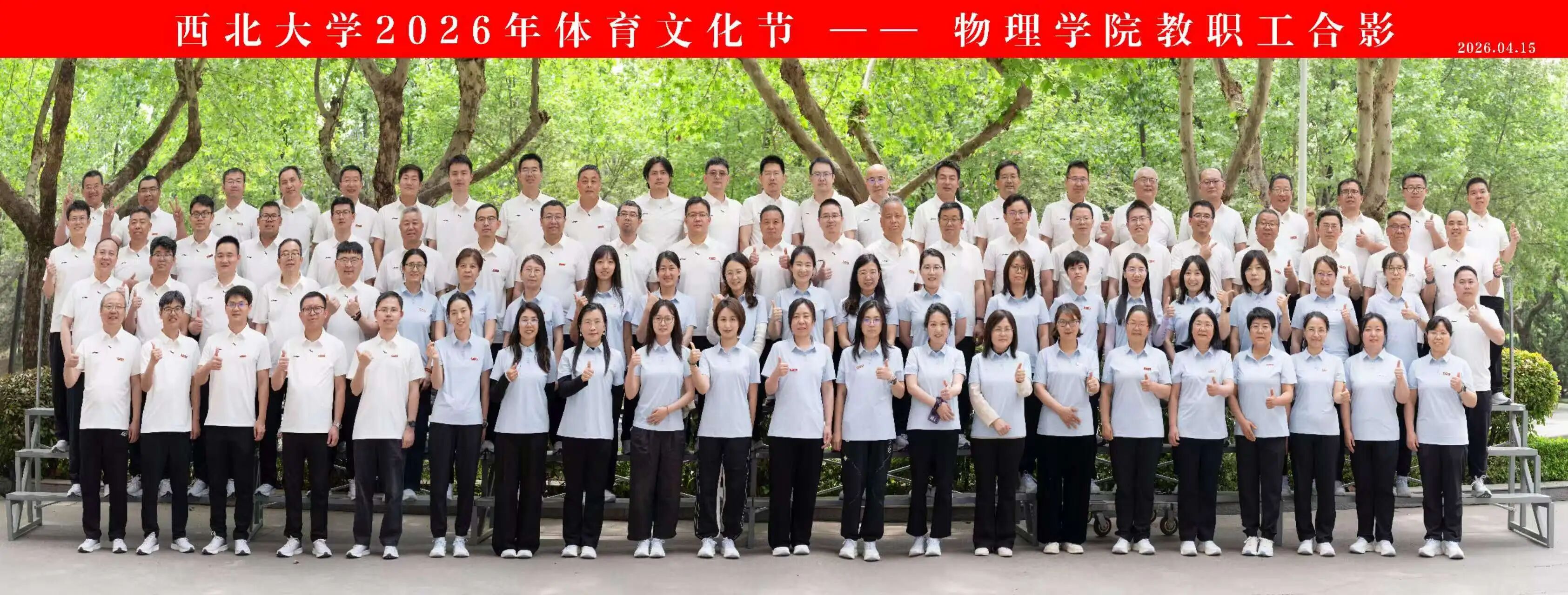 随着各项赛事顺利收官,西北大学2026年体育文化节田径运动会物理学院教职工专场也画上了圆满的句号。我们用镜头定格了无数动人瞬间:有冲刺终点时的坚定眼神,有并肩协作时的温暖笑容,有挑战自我后的从容释然,更有彼此之间的鼓励。每一位参赛老师,都展现出坚韧不拔的意志、永不言弃的信念和突破自我的勇气。