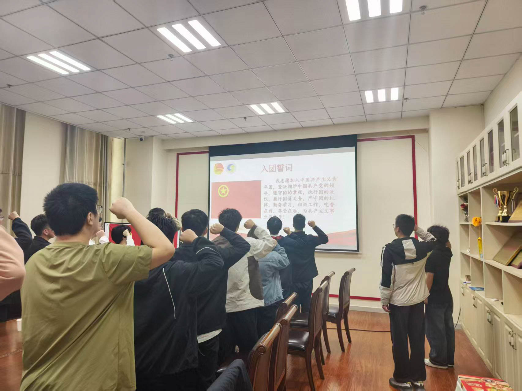 仪式在庄严的国歌声中正式拉开帷幕,全体人员起立肃立,爱国情怀在会场中充分激荡。主持人郑重宣读2025年度新发展团员名单,洪舒猛等11名同学正式加入中国共产主义青年团,现场响起热烈掌声向新团员表示祝贺。随后,老团员代表为新团员逐一佩戴团徽,完成授徽仪式;在宋威瑛同学的领誓下,全体新团员面向团旗举起右拳,庄严完成入团宣誓。宣誓环节结束后,新团员代表姜程鑫发言,分享了自身入团初心,并表示将以团员标准严格要求自己,深耕专业学习、积极参与实践,把个人成长与时代发展相结合。优秀团员代表费梽坤向新团员表示祝贺,并结合自身学习与团务工作经历,勉励大家坚定理想、勤奋学习、勇于担当。最后,学院团委副书记陈龙龙作总结讲话,对新团员的加入表示欢迎,叮嘱大家牢记入团誓言、严守团的纪律,在学习、生活与工作中充分发挥先锋模范作用。仪式在激昂的《光荣啊,中国共青团》歌声中圆满落下帷幕。