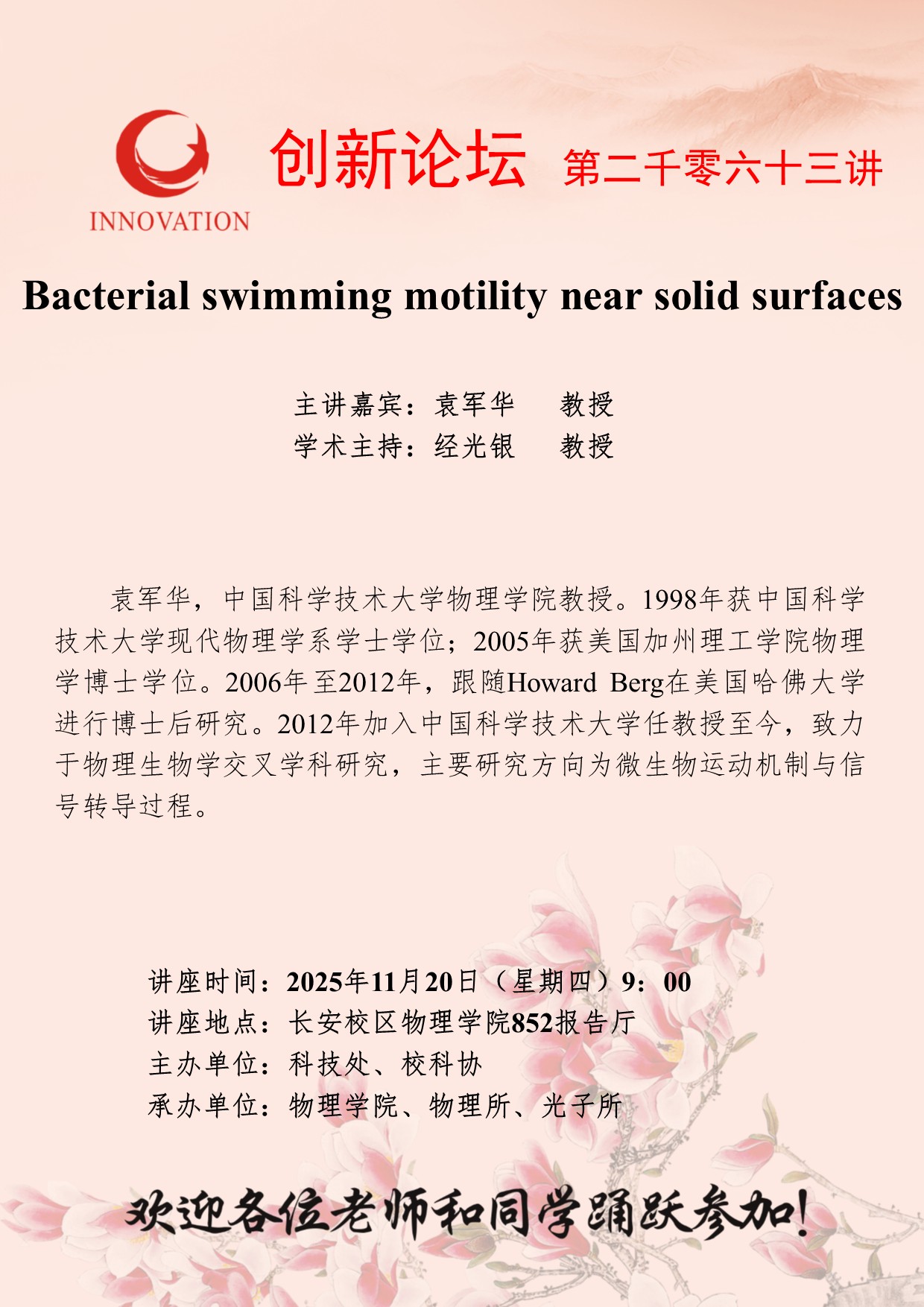 上一篇:西北大学创新论坛第二千零六十四讲:Bacterial dynamics, ind...