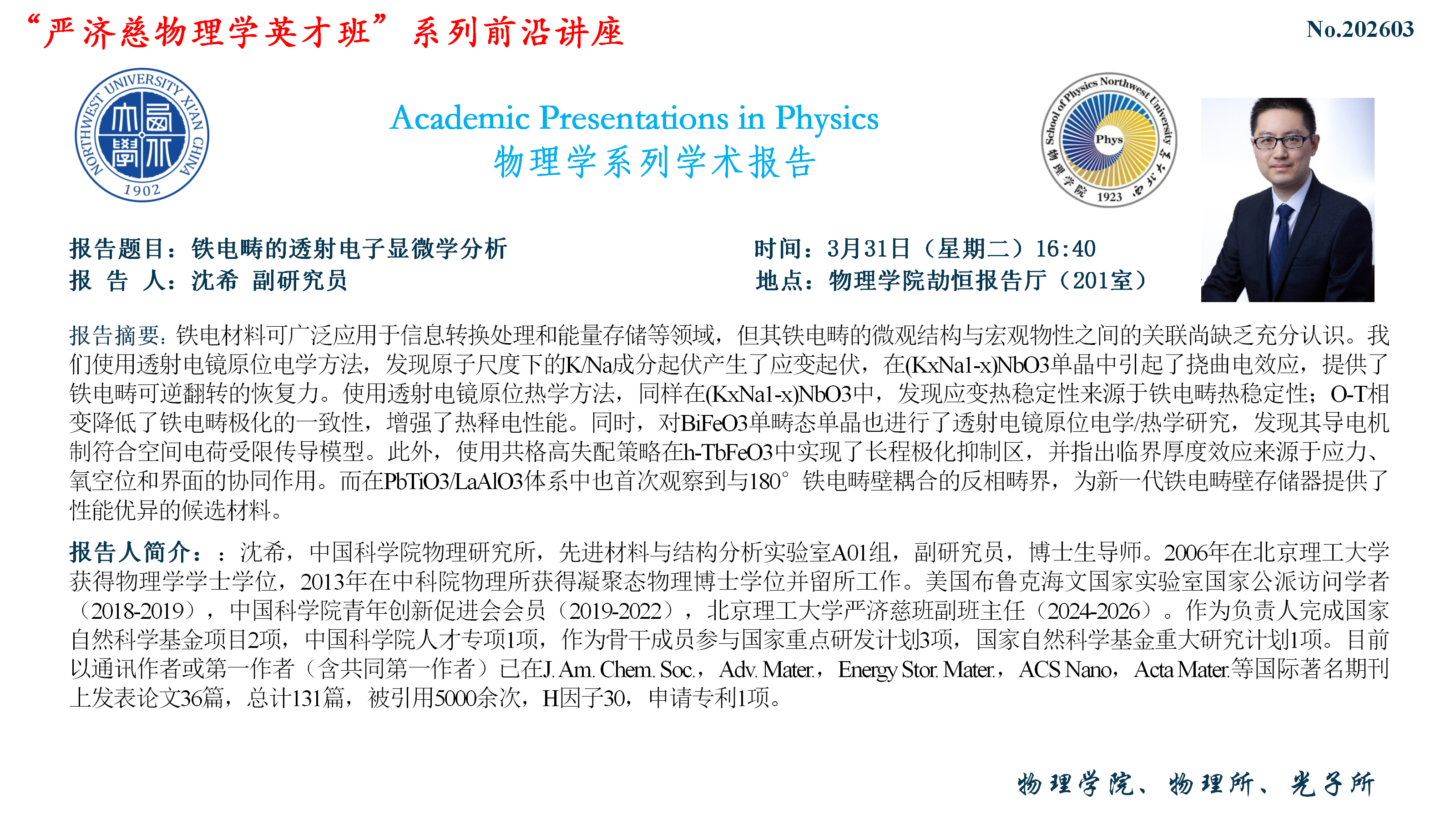 下一篇:“严济慈物理英才班”系列前沿讲座暨学术报告——高通量超导研究